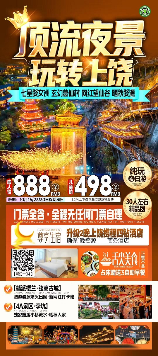 10月【江西:庐山、三清山、婺源、景德镇、灵山】线路及报价