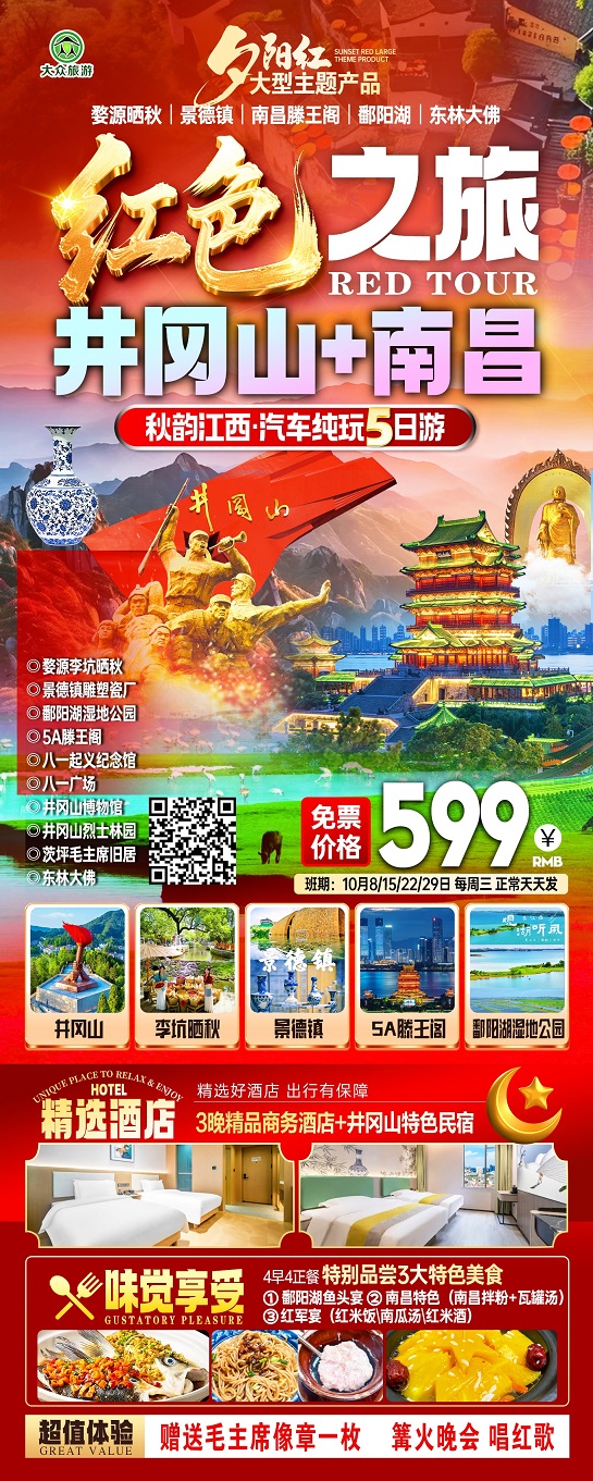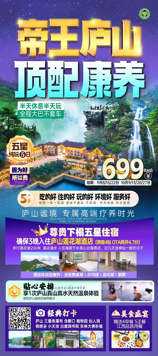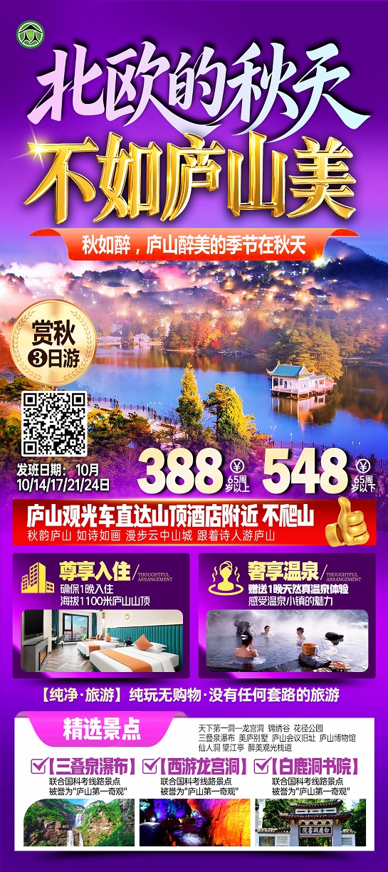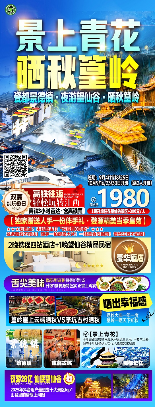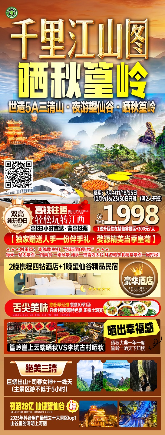 线路名称:10月【江西:庐山、三清山、婺源、景德镇、灵山】线路及报价