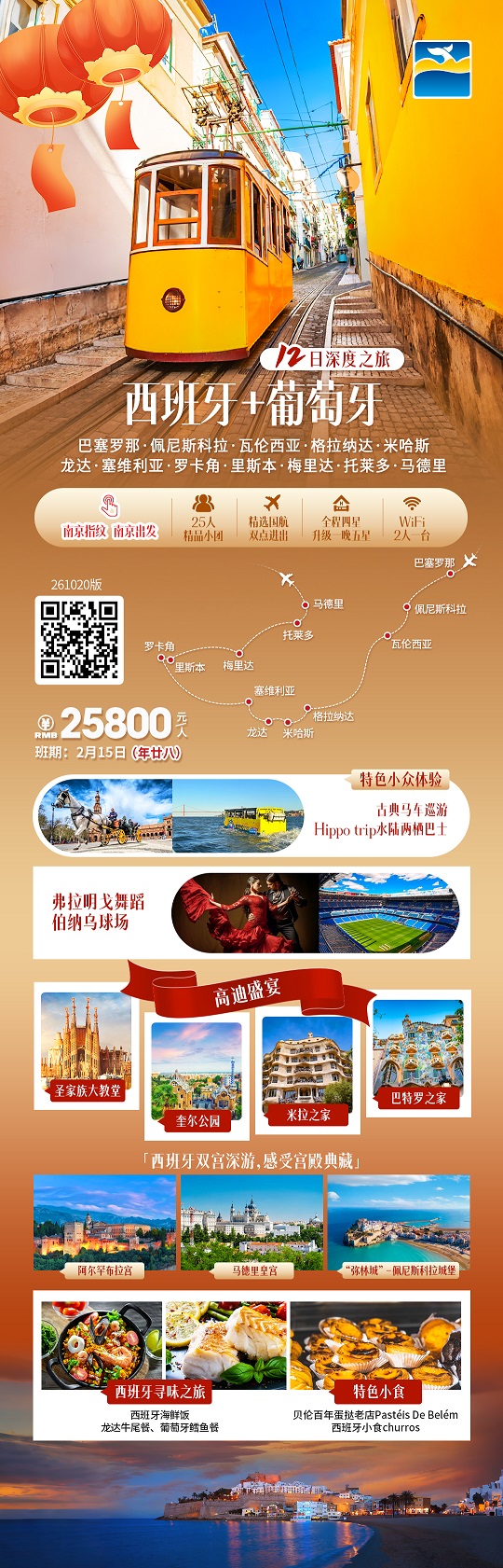 【新春 · 南京指纹&出发&25 人精品】西班牙、葡萄牙 12 日深度之旅