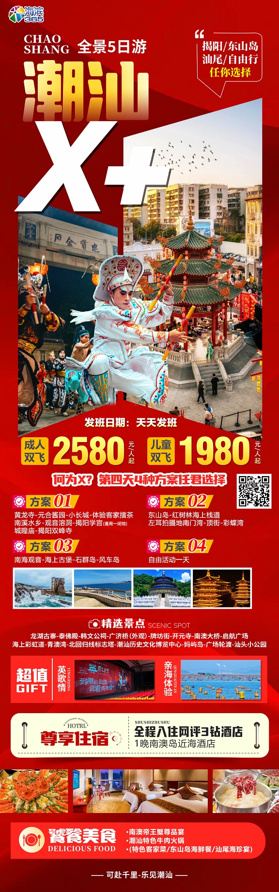 【潮汕 X+:潮州 南澳岛 汕头全景5日游 1晚南澳岛近海酒店 1天自由】.行程