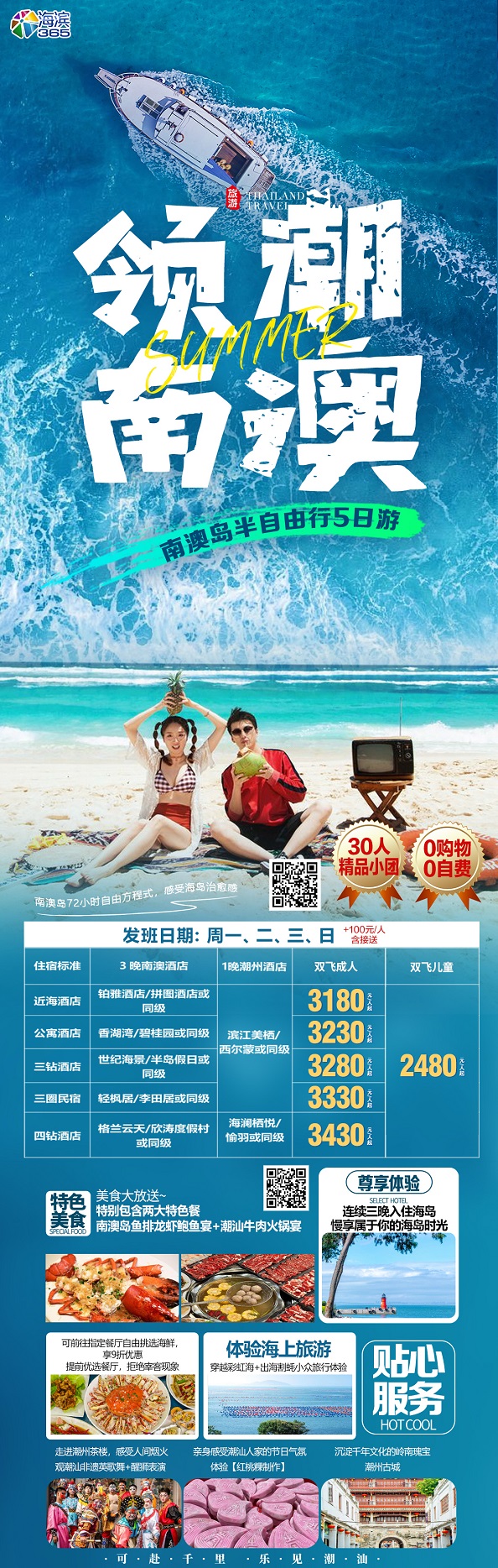 【潮玩南澳私家团: 潮州汕头南澳岛5日游 一家一团 2晚住南澳岛】.行程