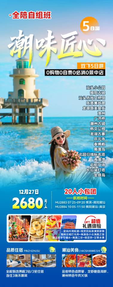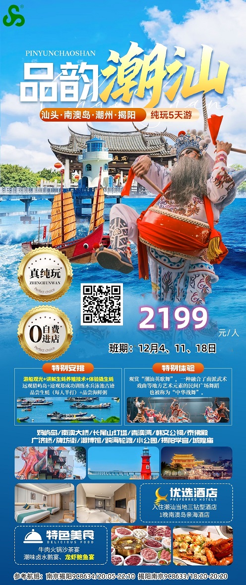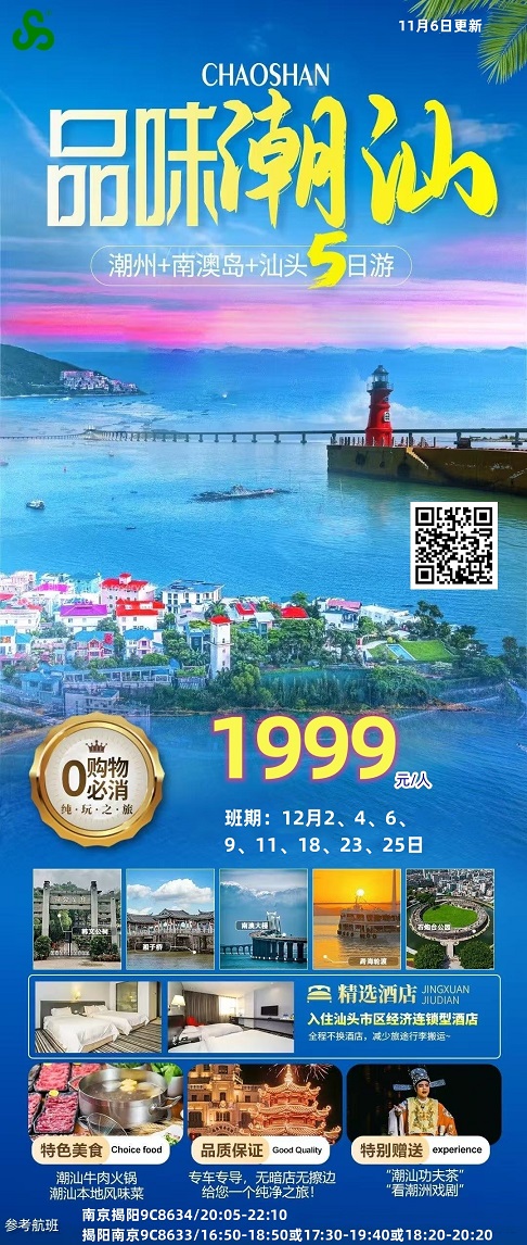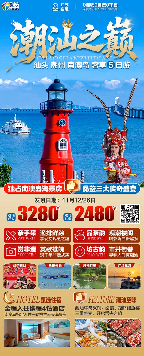 线路名称:12月【潮汕:南澳岛 潮州 汕头】旅游线路及报价