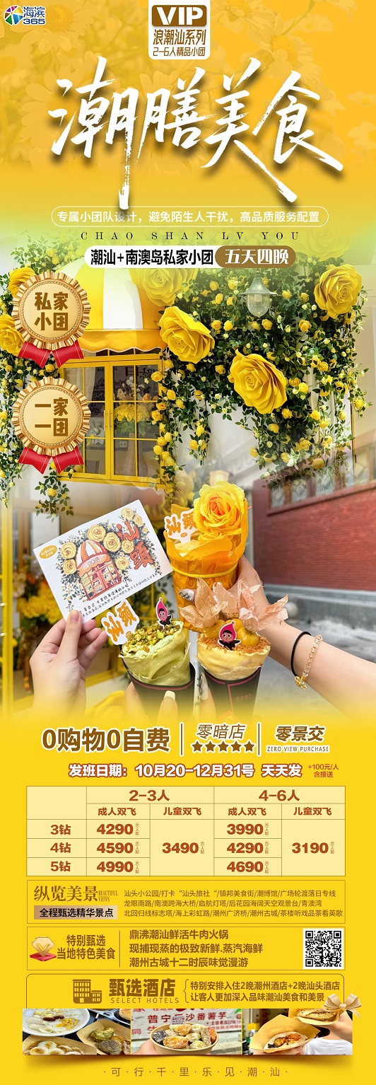 【潮汕美食私家团: 潮州汕头+南澳岛5日游 0购物0自费 一家一团】.行程