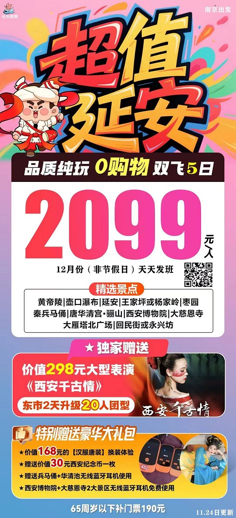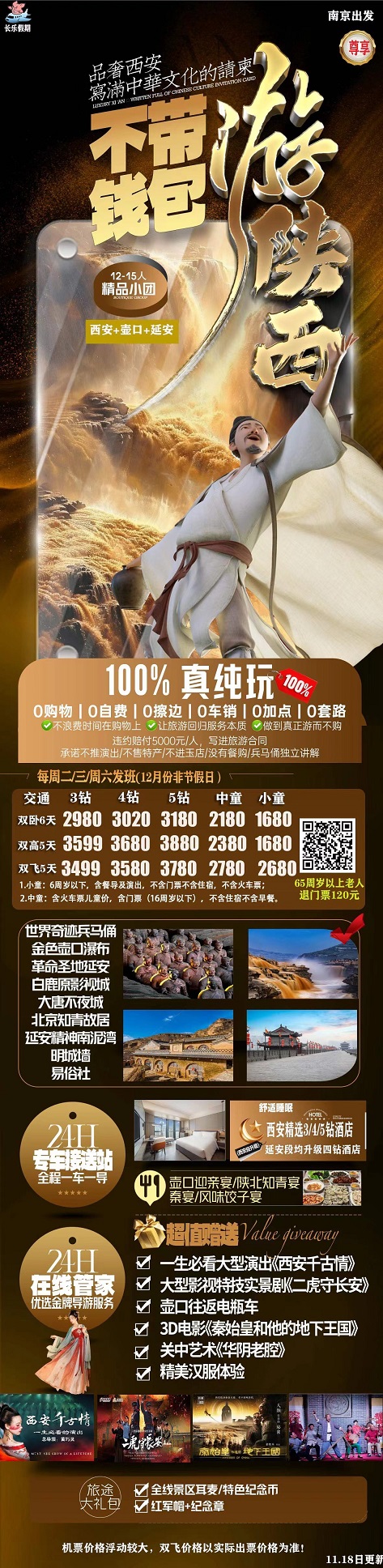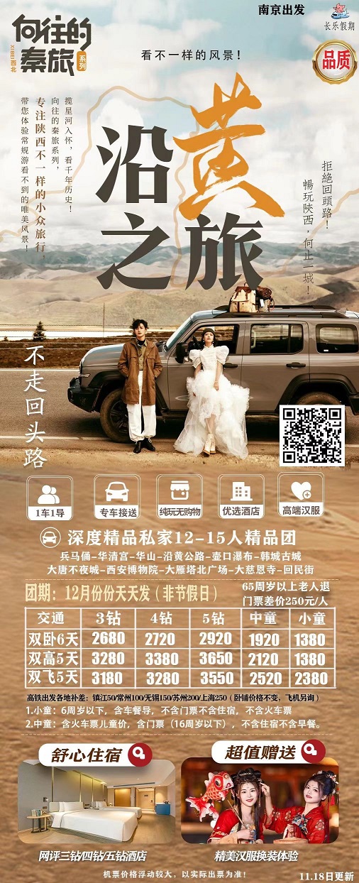 线路名称:12月【陕西:西安 延安 壶口瀑布 华山】线路及报价