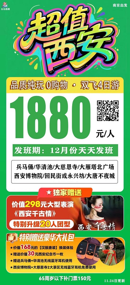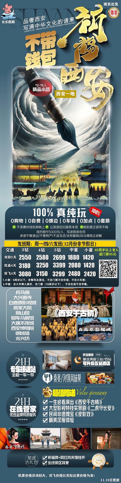 【不带钱包祈福西安:西安兵马俑 博物院 千古情4-5日游 0购物0自费】.行程