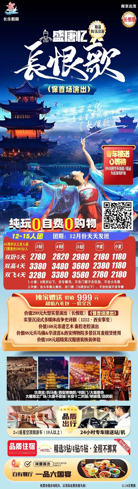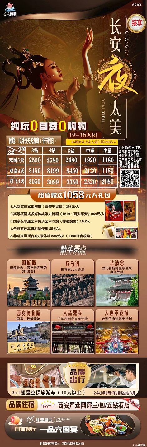 【长安夜太美:西安15人小团4-5日游 含三场演出】.行程