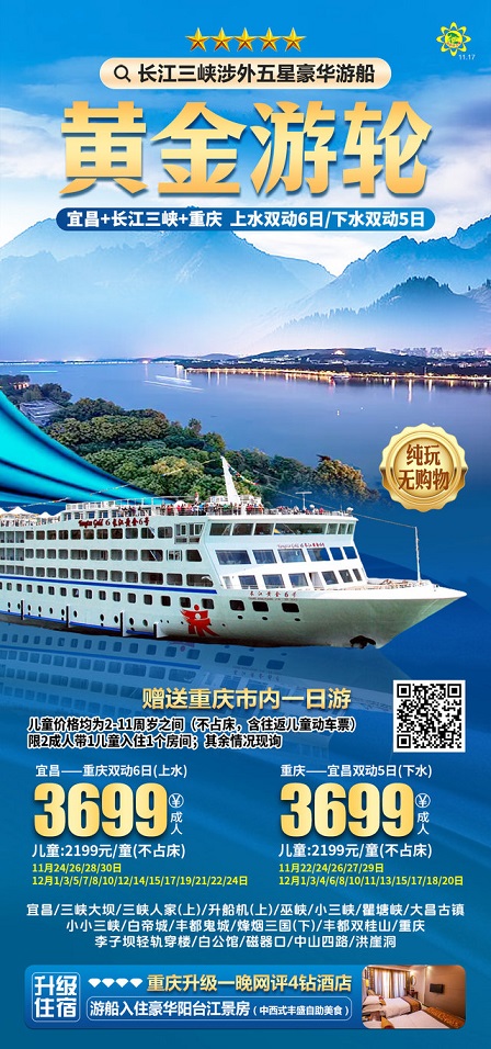 12月【长江三峡游轮:宜昌 长江三峡 重庆】线路及报价