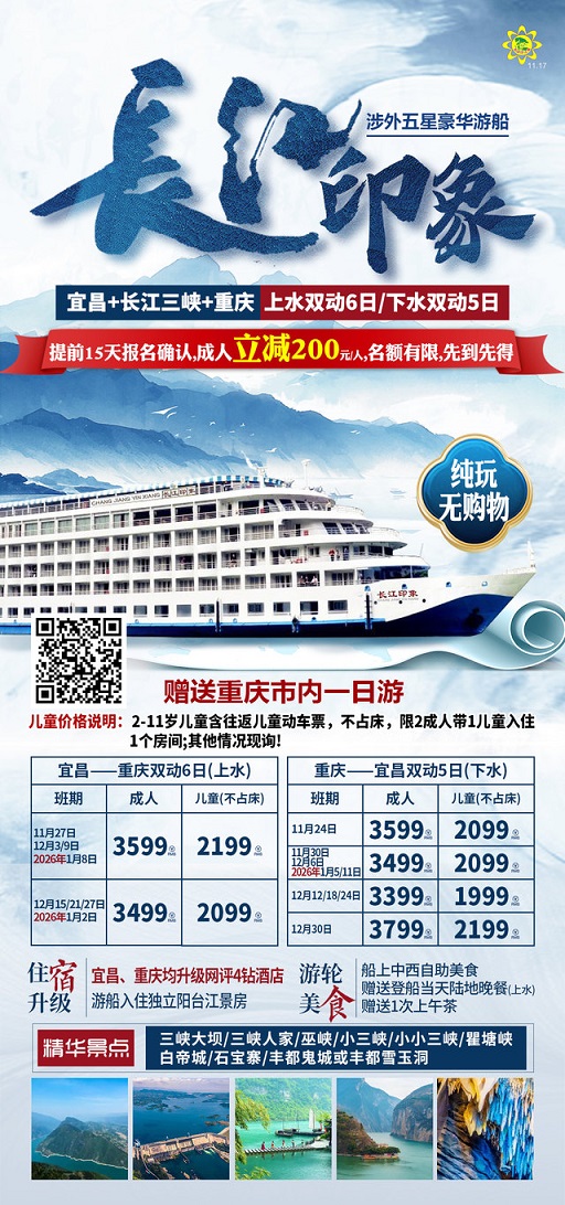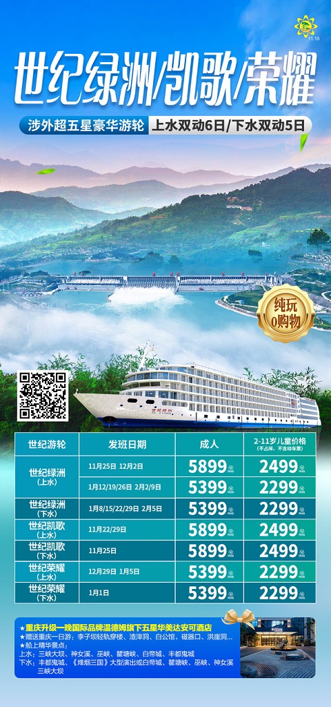 当前位置:首页 >> 国内长线 >> 12月【长江三峡游轮:宜昌 长江三峡 重庆】线路及报价
