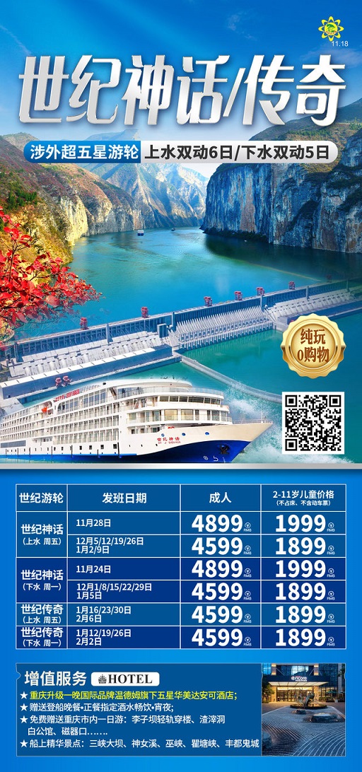 线路名称:12月【长江三峡游轮:宜昌 长江三峡 重庆】线路及报价