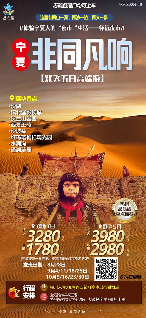 10月【宁夏】线路及报价-中国康辉南京国际旅行社有限责任公司