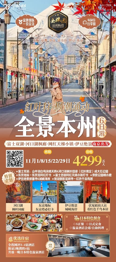 【约惠本州:日本富士双湖•红叶限定6日游】.行程