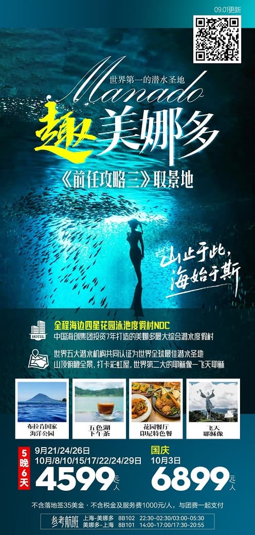线路名称:9-10月【印尼:美娜多】线路及报价