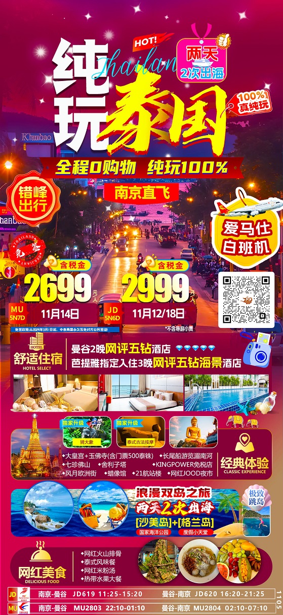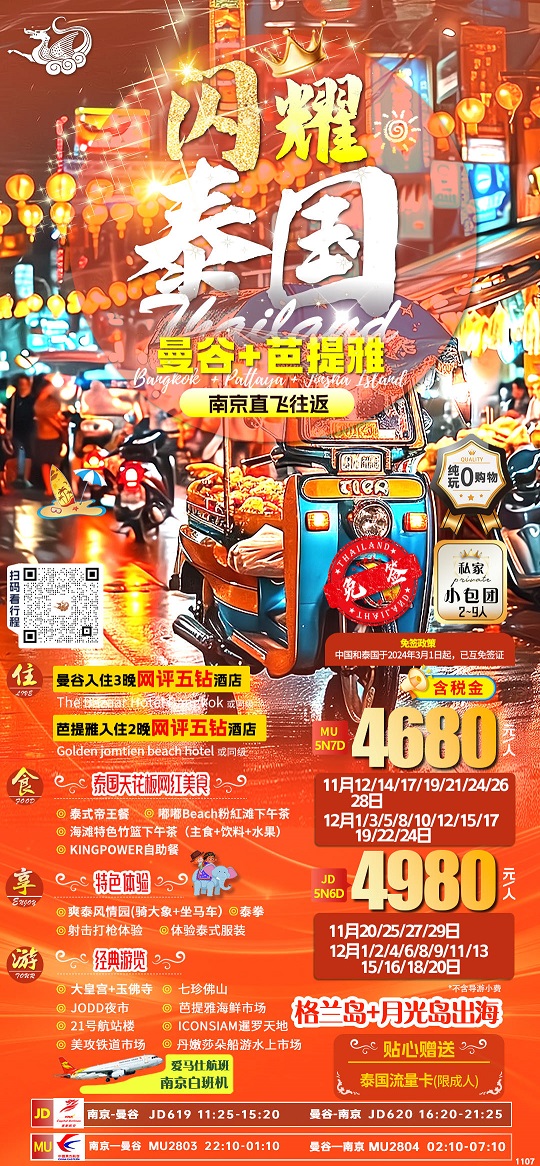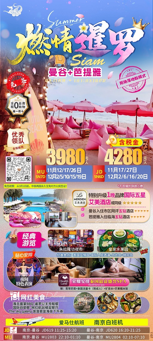 【燃情暹罗:泰国曼谷+芭提雅纯玩6-7日1晚国际五星酒店+月光岛+桃花岛】.行程