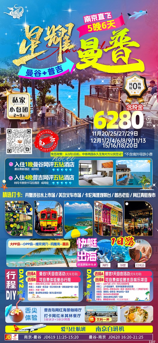 【星耀曼普:曼谷+普吉5晚6天私家小包团 1晚曼谷+4晚普吉五钻酒店】.行程