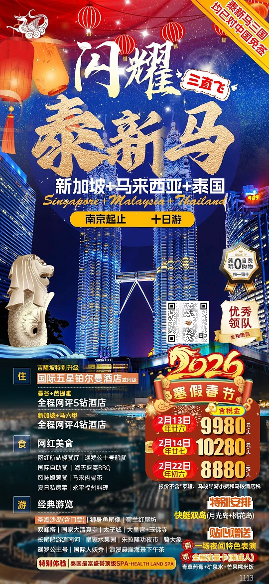 【闪耀泰新马:新加坡+马来西亚+泰国10日游 0购物0自费】.行程