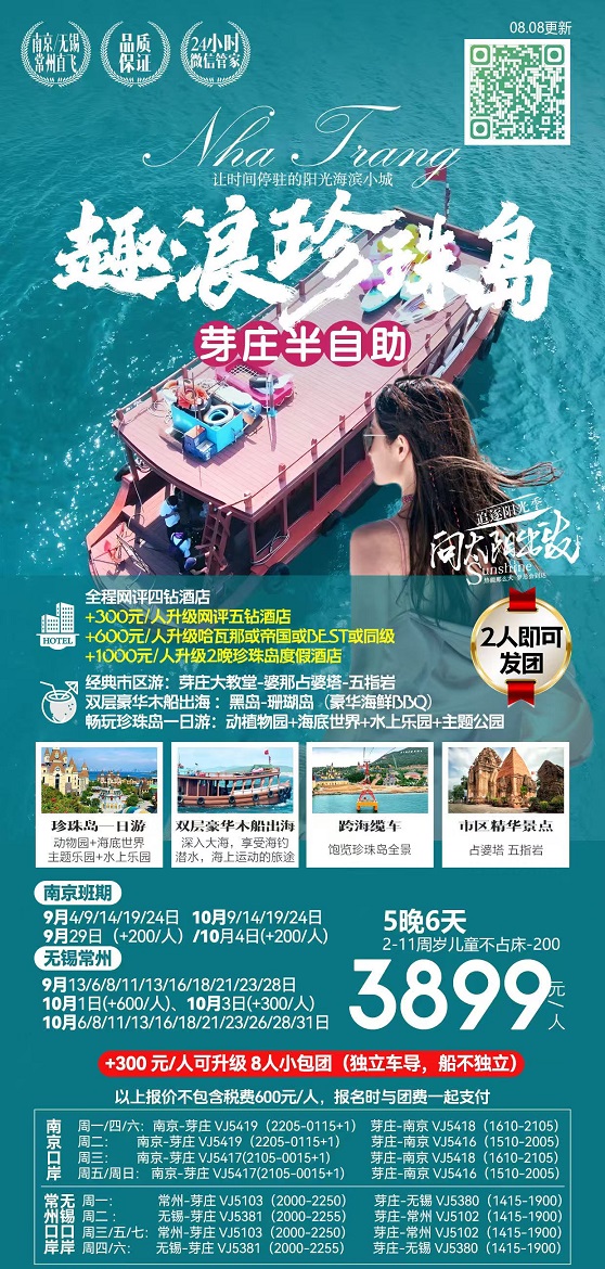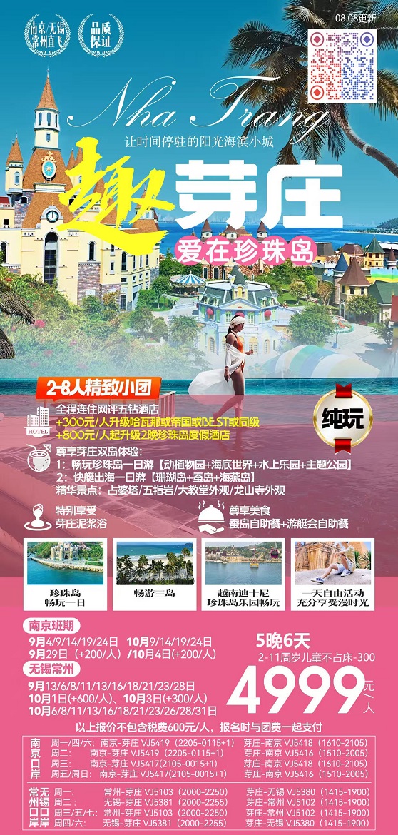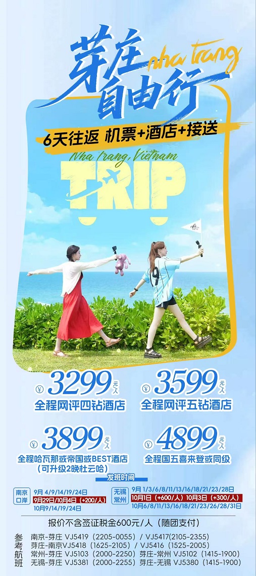 线路名称:10月【越南芽庄-南京直飞】线路及报价
