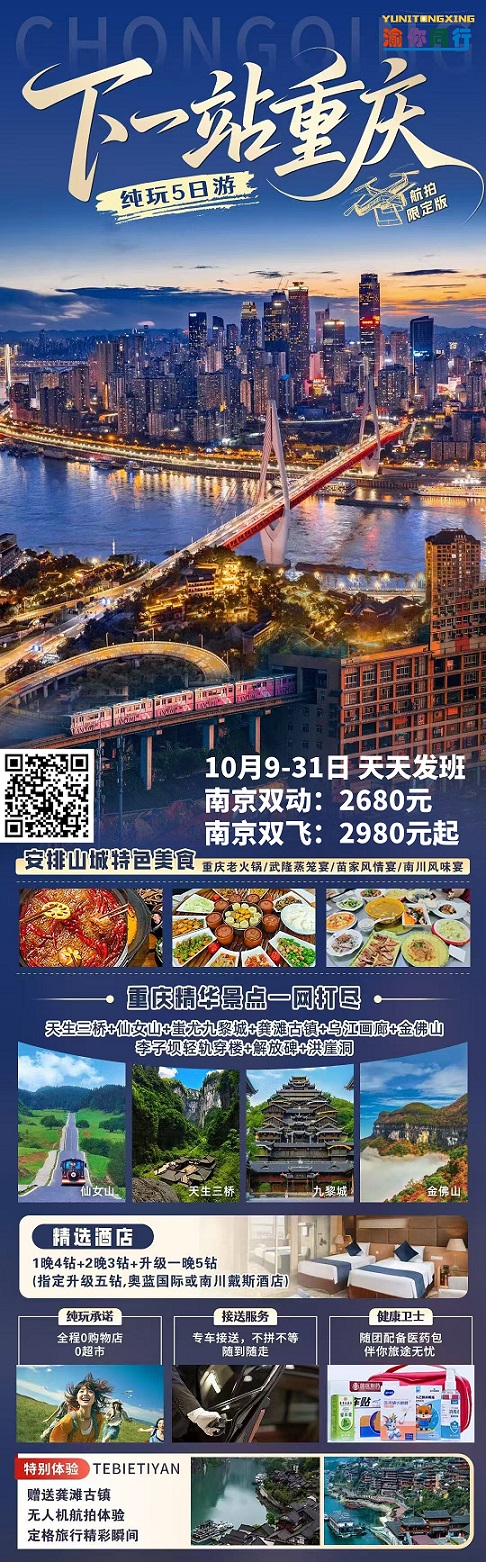【下一站重庆:重庆武隆+乌江画廊+金佛山+魔幻山城纯玩5日游】.行程