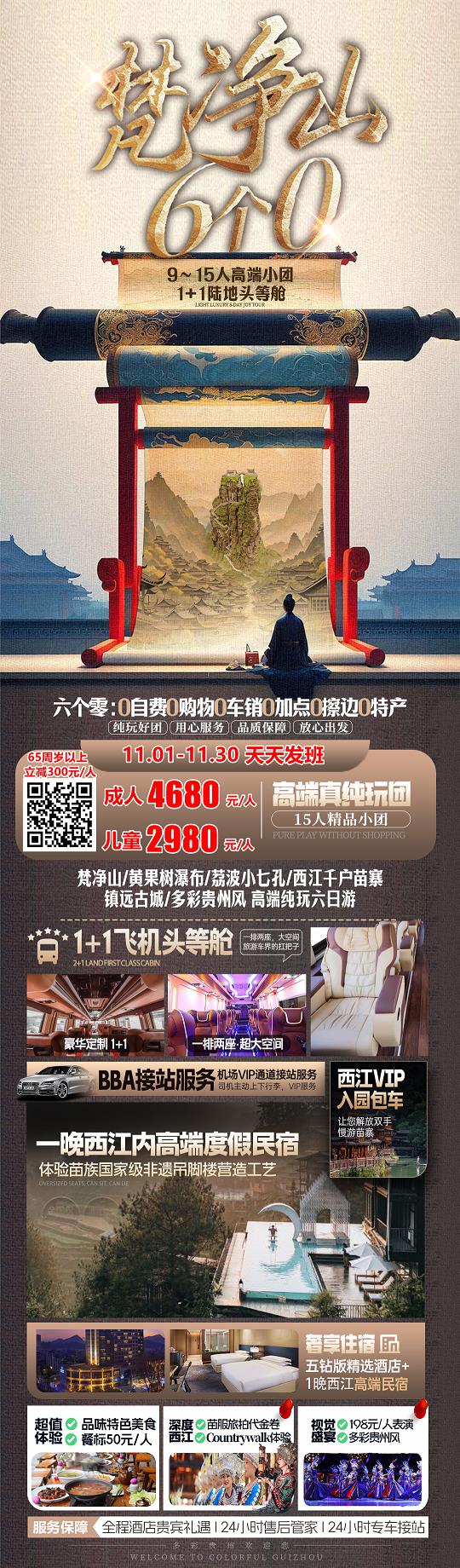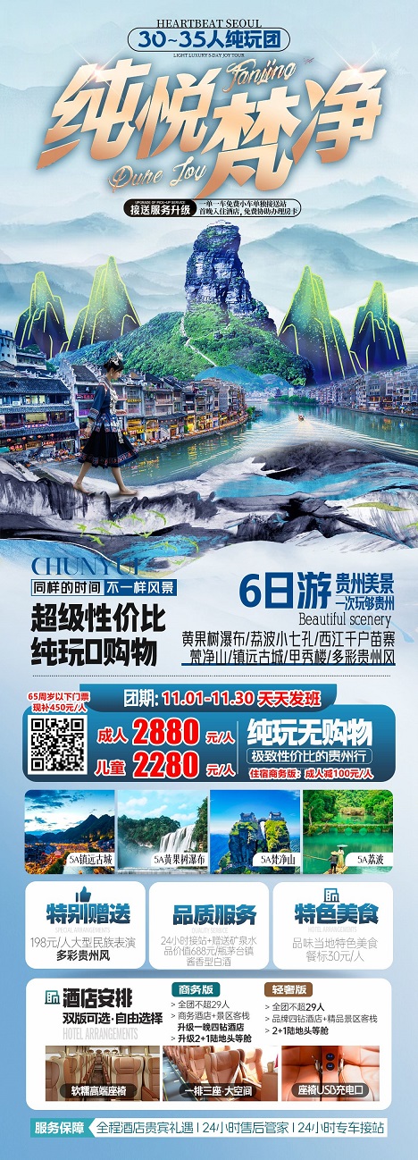 【梵净行:黄果树 小七孔 西江苗寨 镇远 梵净山双飞6日 0自费0购物】.行程