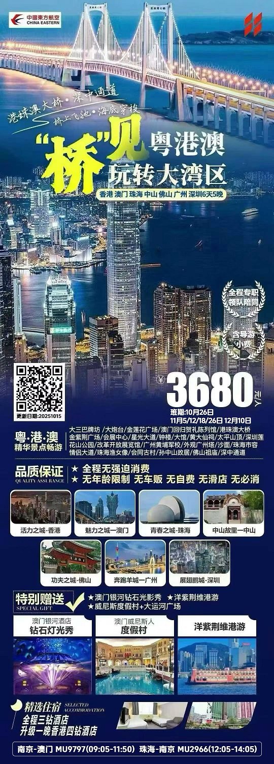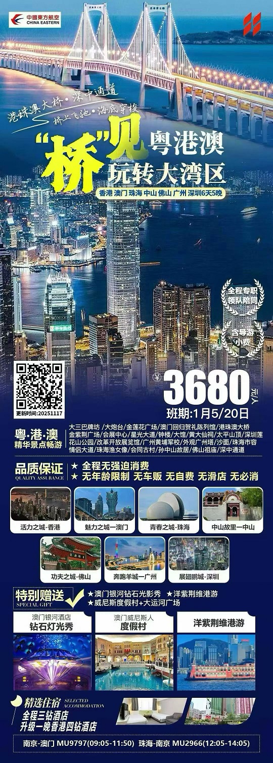 【桥见粤港澳:香港澳门 深圳 广州 佛山 中山 珠海6天】.行程