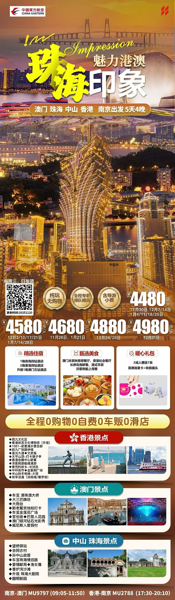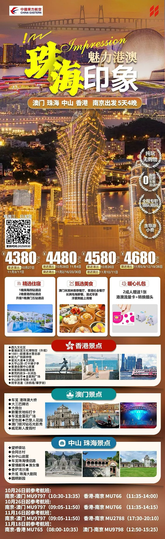 【珠海印象:香港 澳门 珠海 中山 纯玩5日游】.行程