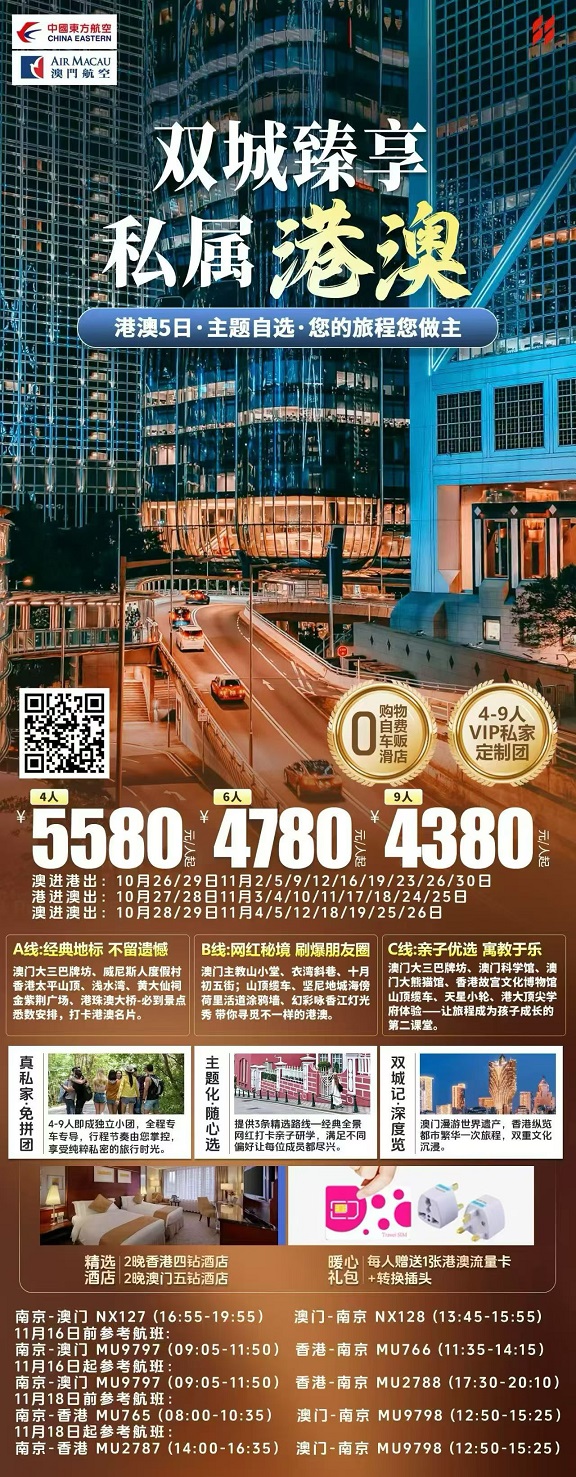 【私属港澳:香港澳门5天4晚私家定制团 0购物0自费】.行程