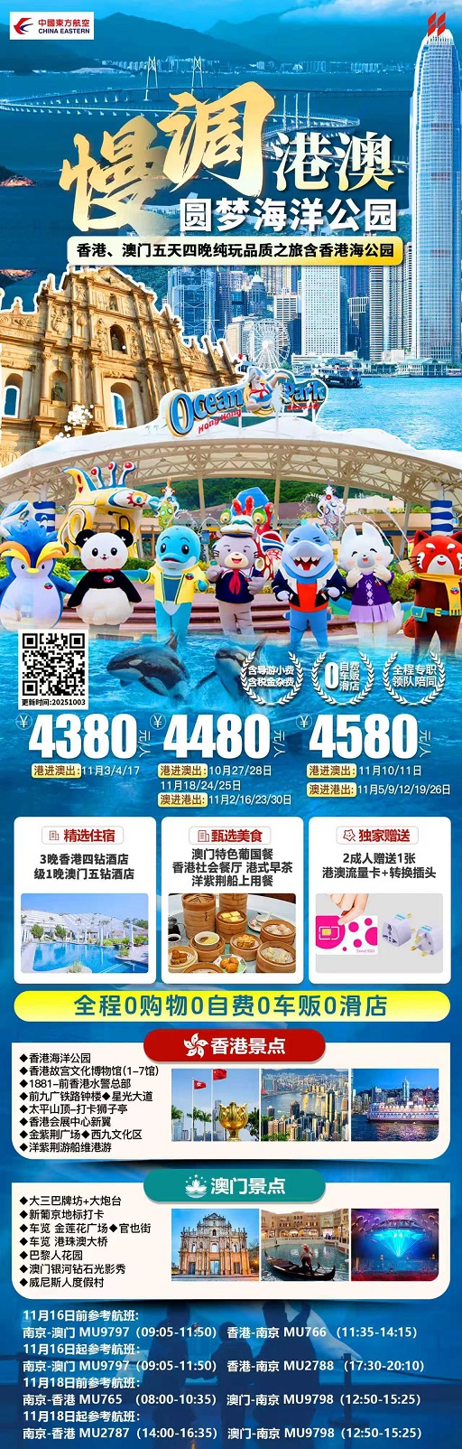 【慢调港澳:香港澳门+海洋公园5日游 0购物0自费】.行程