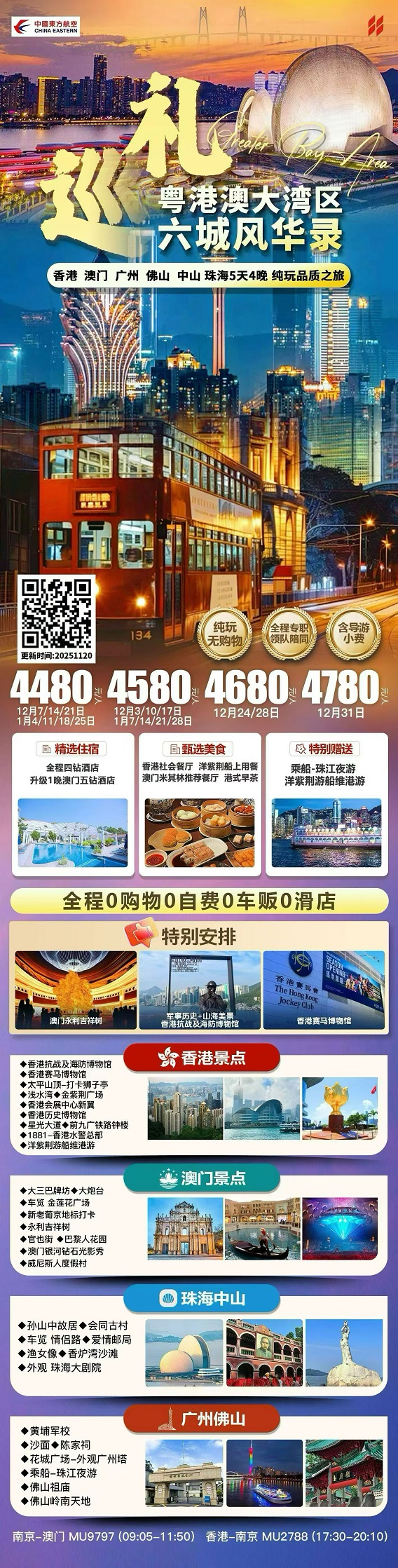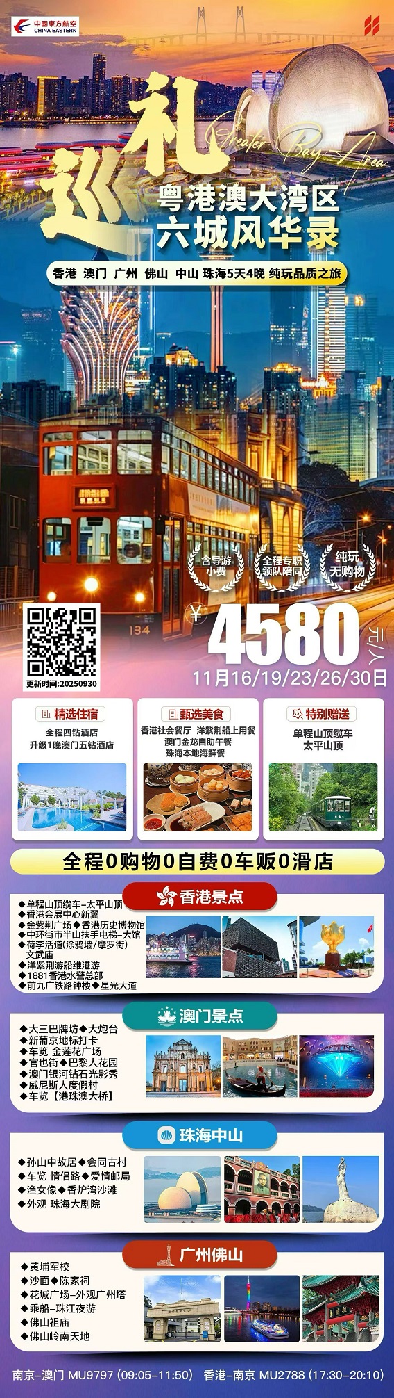 【粤港澳大湾区六城:香港 澳门 广州 佛山 中山 珠海5日游 0购物0自费】.行程