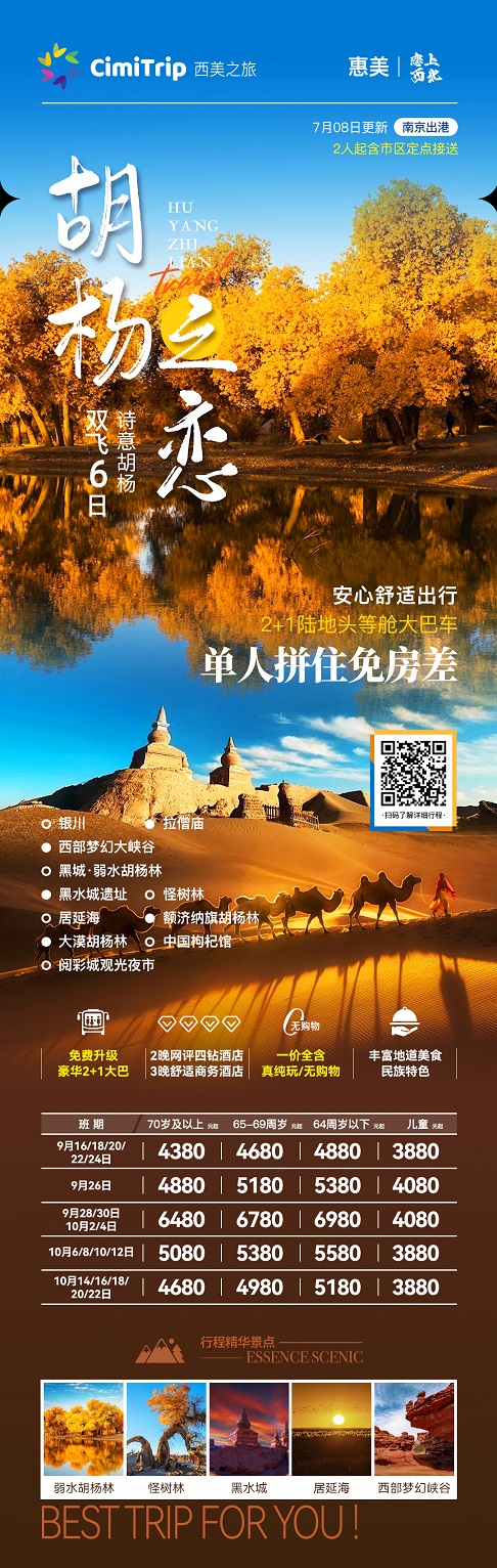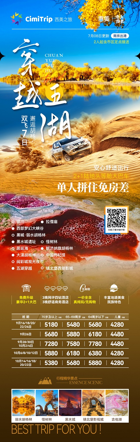 10月【额济纳胡杨林】线路及报价-中国康辉南京国际旅行社有限责任公司