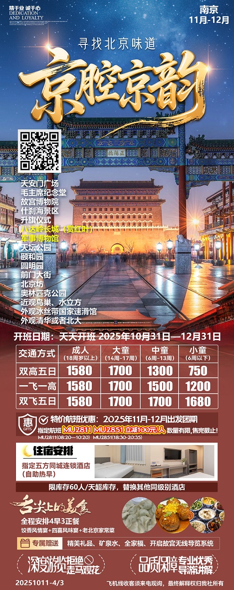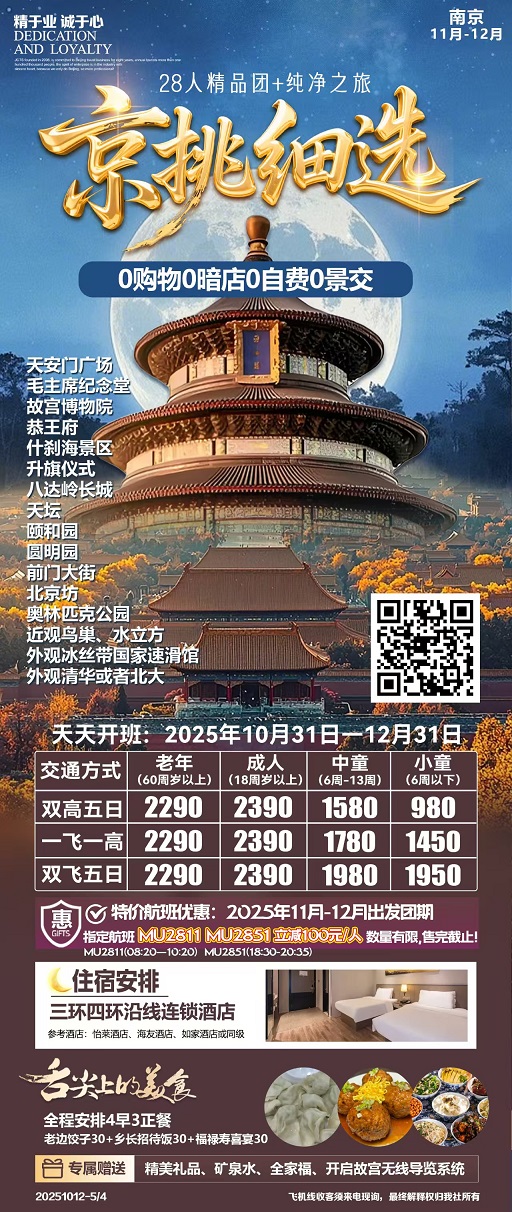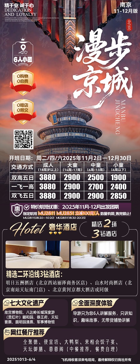 【轻奢慢游:北京5日游 0购物0自费 三四环沿线三钻酒店 18人精品小团】.行程