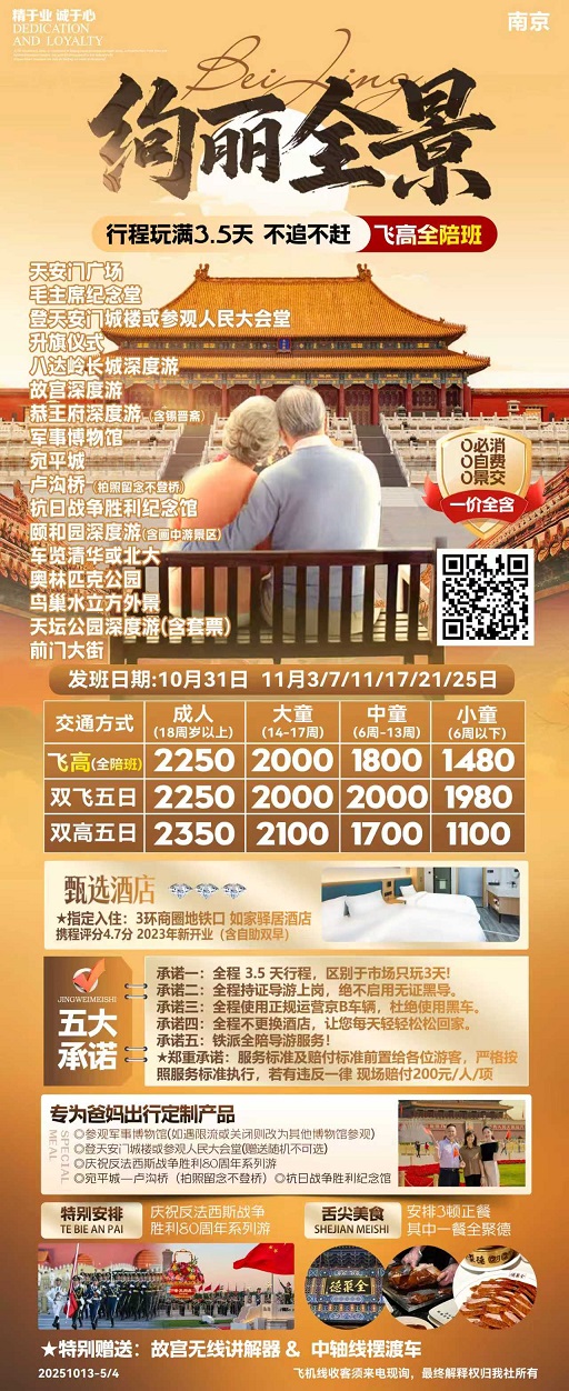 【绚丽全景全陪班:北京5日游 住全季酒店 一价全含】.行程