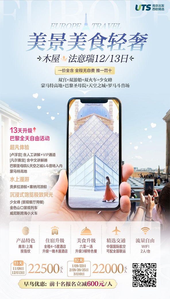 11月-3月【欧洲-南京往返:法国 瑞士 意大利 德国 东欧 西班牙 葡萄牙】线路及报价