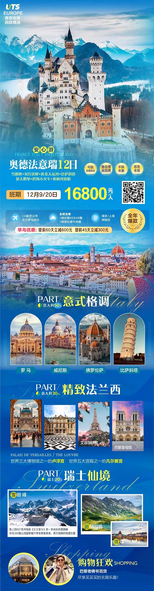 【南京出发欧洲:新天鹅堡+德法意瑞12日 雪朗峰+含全餐】.行程