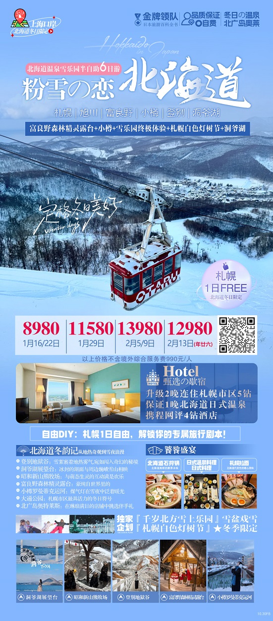 线路名称:12月-2月【日本北海道-上海往返】线路及报价