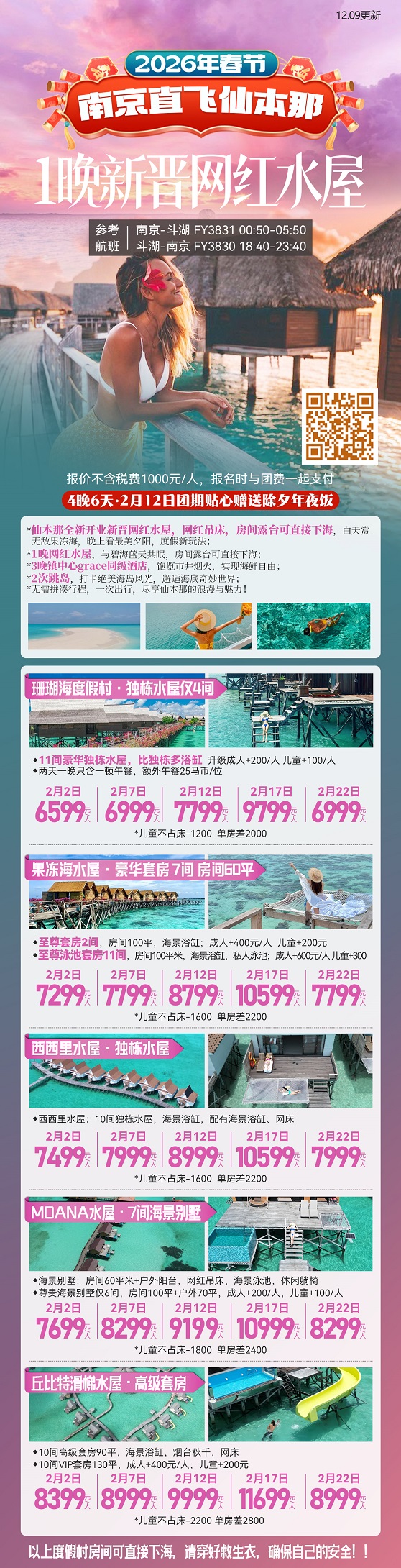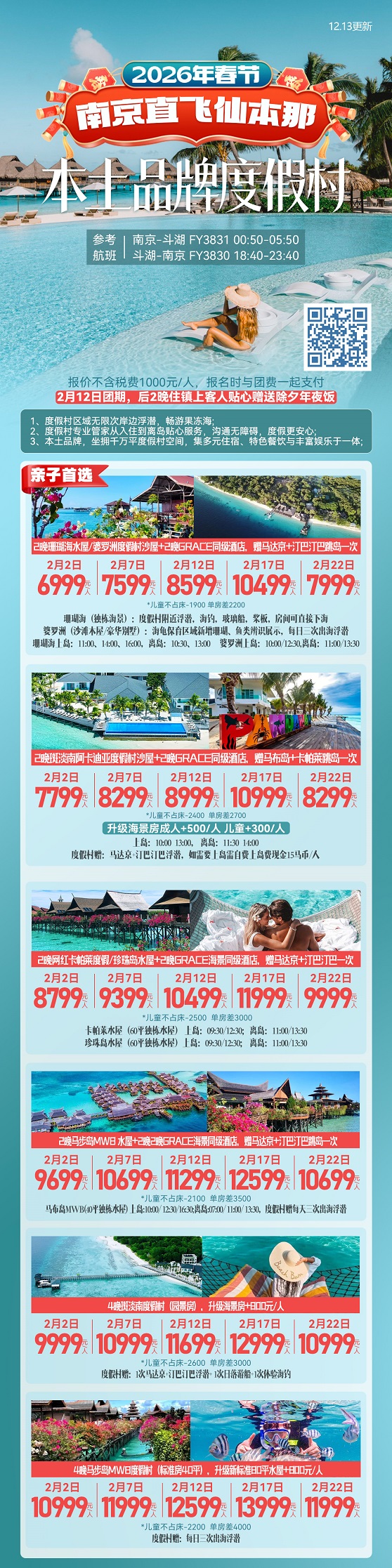 线路名称:春节【仙本那-南京直飞】2月2日-2月22日报价