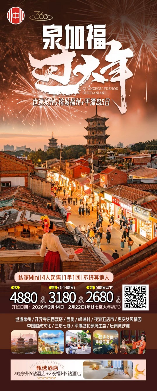 当前位置:首页 >> 国内长线 >> 春节【福建:福州 平潭岛 白水洋 霞浦 太姥山 泉州 东山岛】2月14日-22日报价