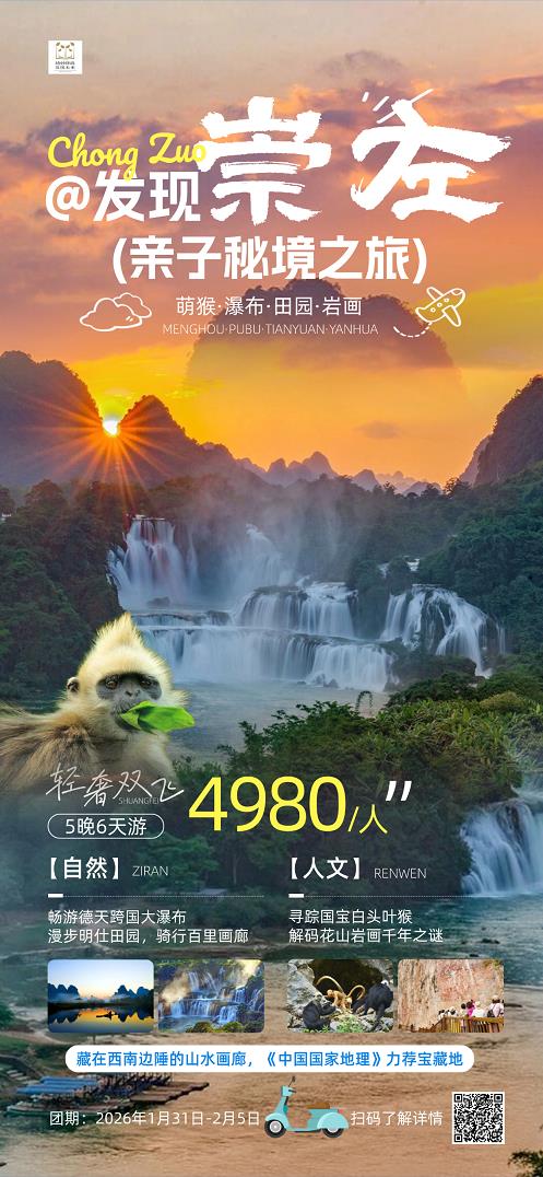 早餐后,乘车前往【白头叶猴自然保护区】(游览约3小时,含景区电瓶车)广西白头叶猴自然保护区是为了保护白头叶猴及其栖息地而设立的自然保护区。白头叶猴是世界珍稀猴种,也是中国特有的灵长类动物,比大熊猫还稀有的石山精灵--白头叶猴,被列为国家一级重点保护野生动物,白头叶猴因头顶毛发呈白色、并以树叶为食而得名,是广西崇左市特有物种,至今已生存 300 多万年,被公认为世界上稀有的猴类,全世界仅有 1000 只左右,崇左市就有 400 多只白头叶猴在此生活,因此被称为“中国白头叶猴之乡”。