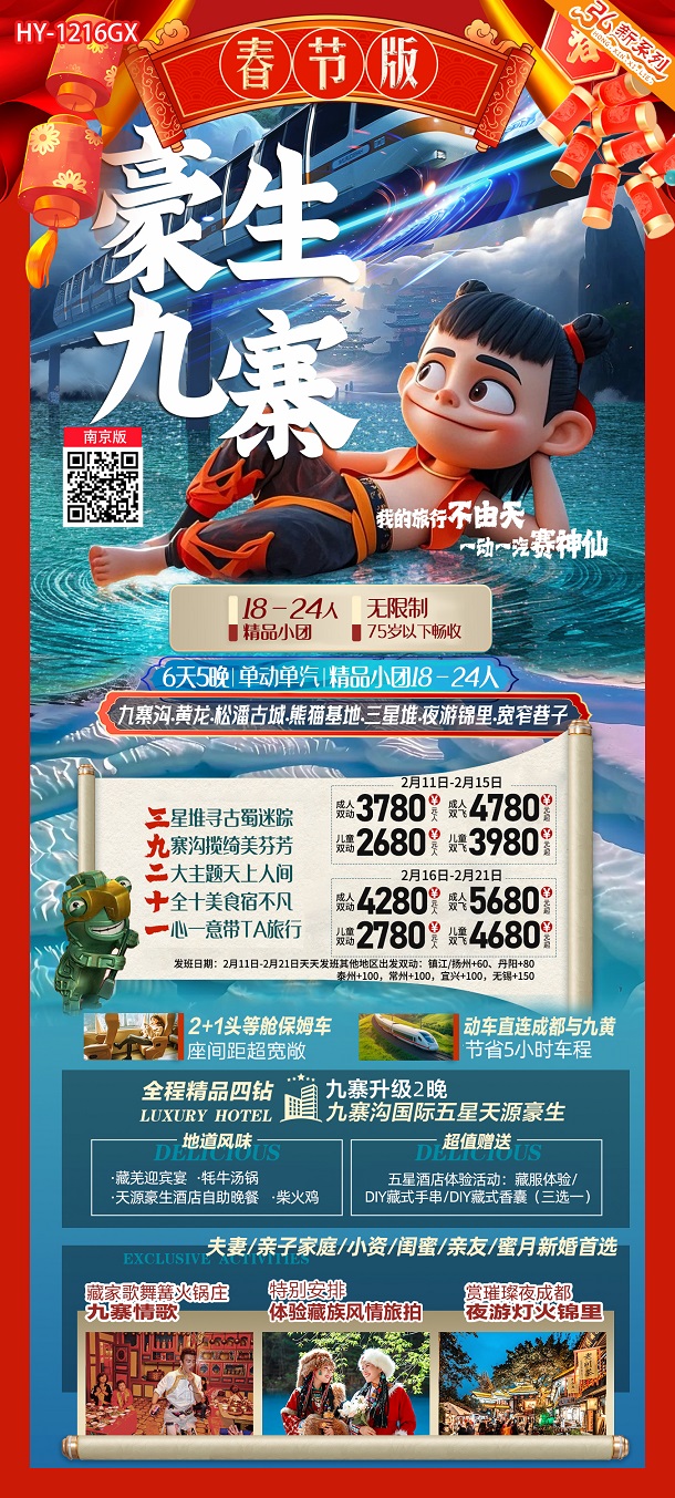 线路名称:春节【四川:成都 九寨沟 黄龙 乐山 峨眉山 都江堰 青城山】2月11日-2月21日报价