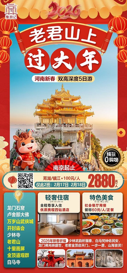 线路名称:春节【河南:少林寺 云台山 龙门石窟 郭亮村 老君山】2月17日-18日报价