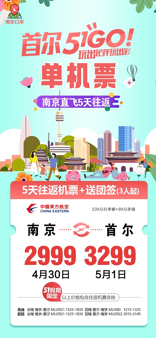 > 五一【韩国首尔、济州岛】4月30日-5月1日报价
