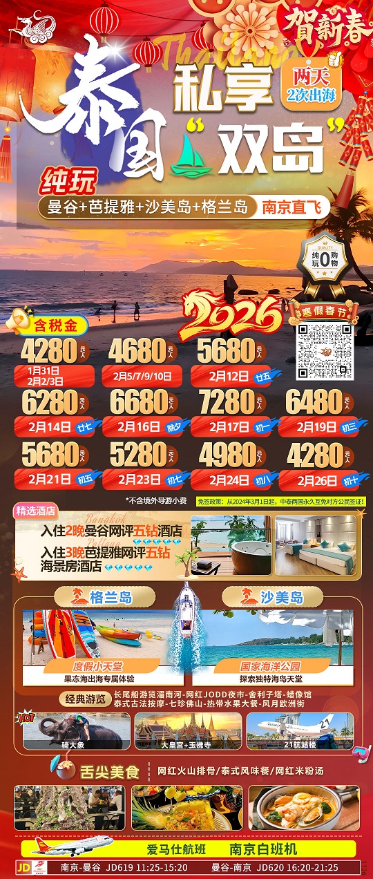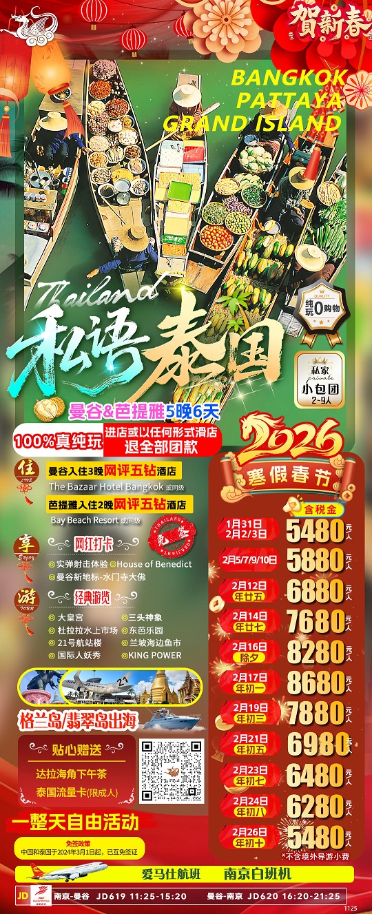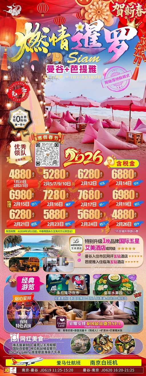> 2月春节【泰国:曼谷 芭提雅】1月31日-2月26日报价