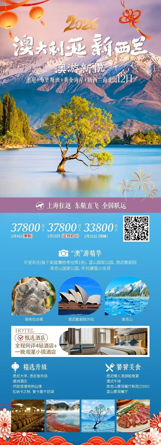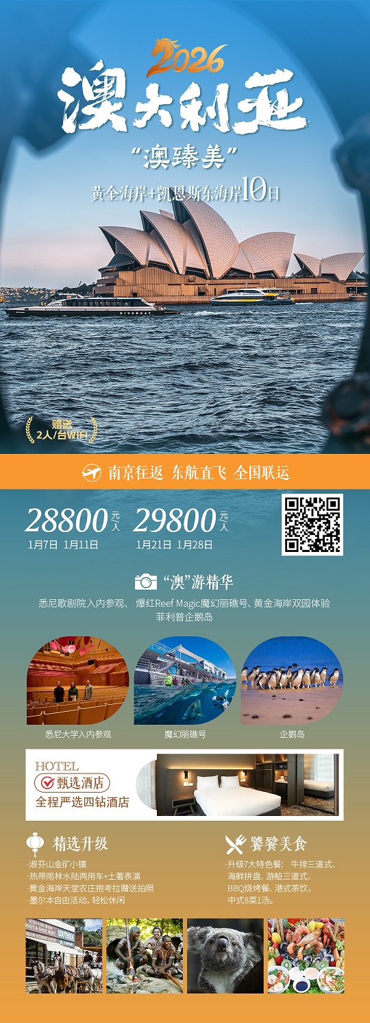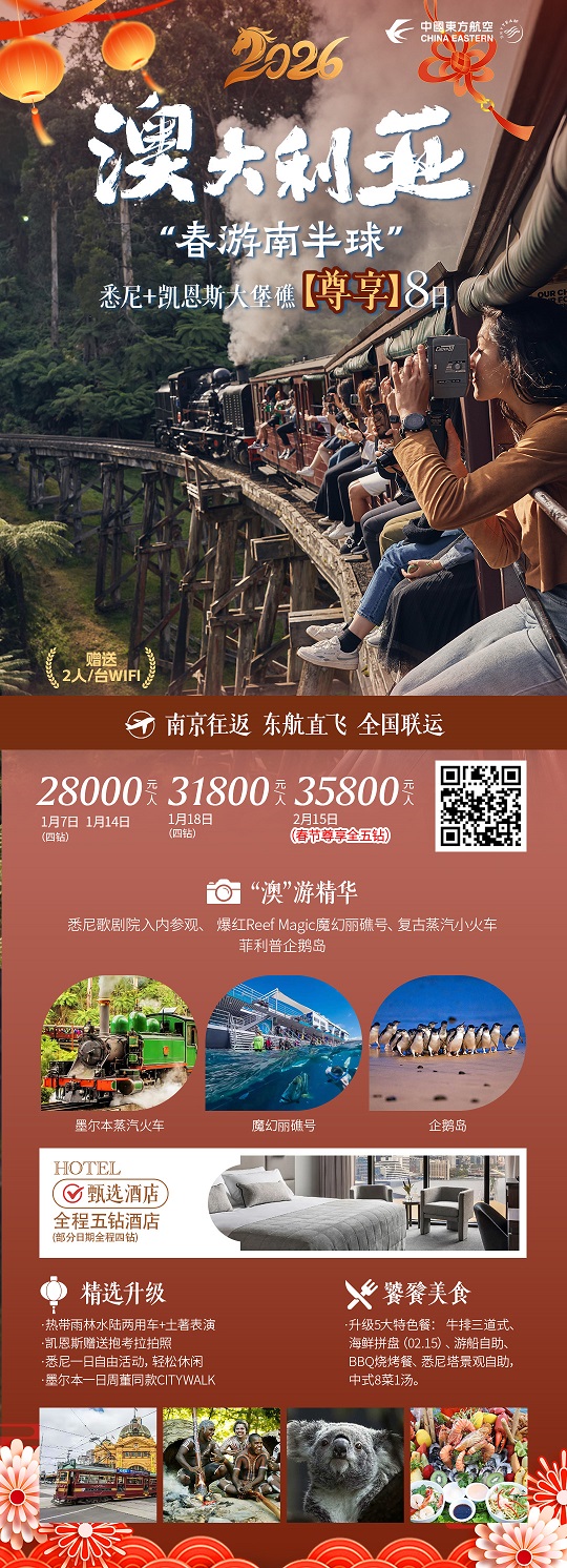 > 1-2月含春节【澳大利亚-南京往返】线路报价