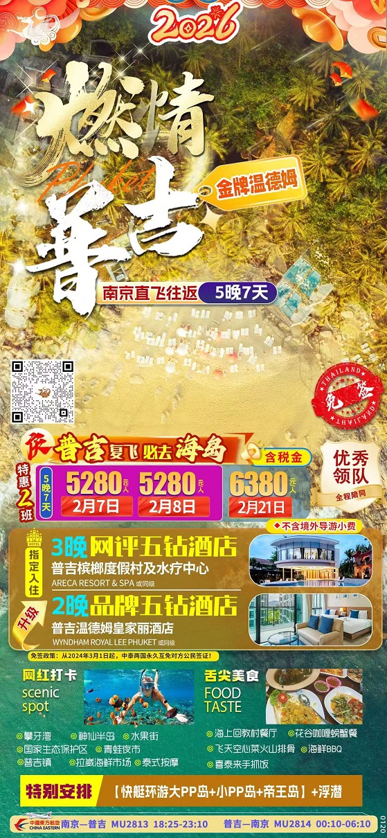 春节【泰国普吉岛-南京直飞】1月29日-2月27日报价