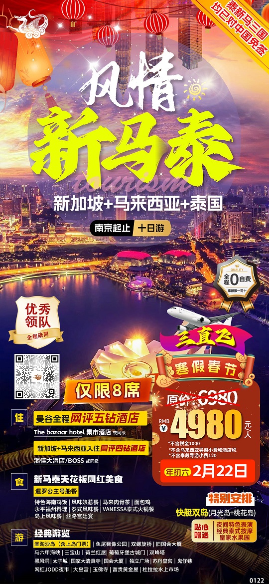 2月春节【泰新马连线:泰国 新加坡 马来西亚】线路及报价