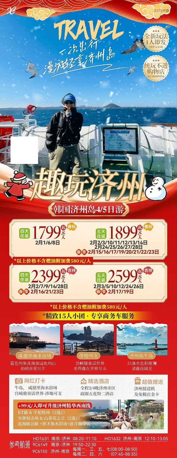 ①交通: 国内-济州往返团队经济舱机票(含机场税+燃油税) 、行程内所列当地用车