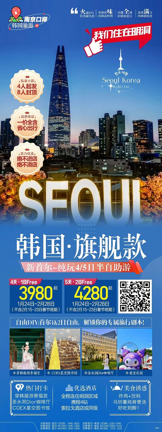 2-3月春节【韩国首尔、济州岛】线路及报价