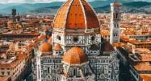 第二天 星期六 | 米兰网约 263 公里网佛罗伦萨网约 270 公里网罗马 佛罗伦萨,徐志摩笔下的“翡冷翠”之城,是意大利文艺复兴发源地,是著名的世界艺术之 都,欧洲文化中心,歌剧的诞生地,举世闻名的文化旅游胜地。 佛罗伦萨城市观光(以下内容合计约60 分钟): 花之圣母教堂和乔托钟楼(外观) :橘红色圆顶的圣母百花大教堂是佛罗伦萨重要的地标, 由教堂、洗礼堂、钟楼组成,洗礼堂的正门由于大师米开朗基罗的赞誉而得到“天堂之门” 的美誉。 市政厅广场(外观) (又名:君主广场和西尼奥列广场):这里有一座建于十三世纪的碉堡式 旧宫(外观)(现为市政厅),侧翼的走廊,现在连同整个广场成为了一座露天雕塑博物 | ||